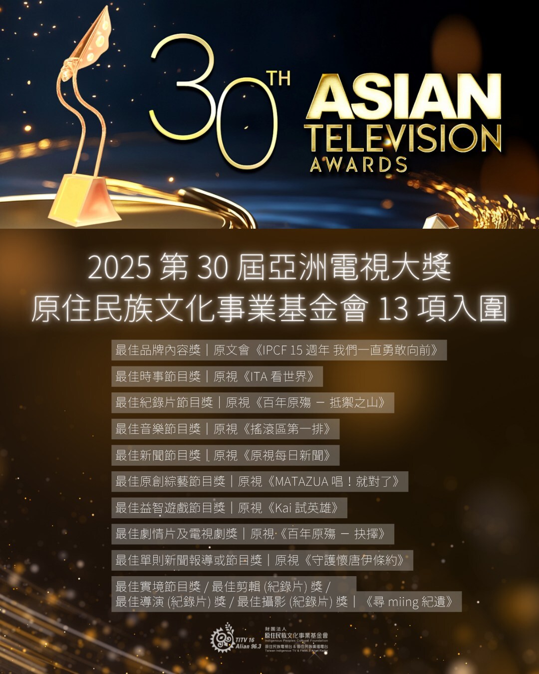 ★ 賀! 本系楊鈞凱助理教授入圍第30屆亞洲電視大獎(Asian Television Awards)最佳紀錄片節目獎